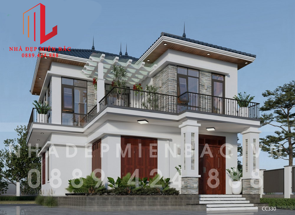 Phong cách thiết kế đơn giản nhưng tinh tế với công năng tầng 1 gồm 1 phòng khách, 1 phòng ngủ, 1 phòng bếp + ăn và 1 nhà vệ sinh, 1 phòng kho, công năng tầng 2 bao gồm 3 phòng ngủ 1 phòng thờ và 2 phòng vệ sinh.